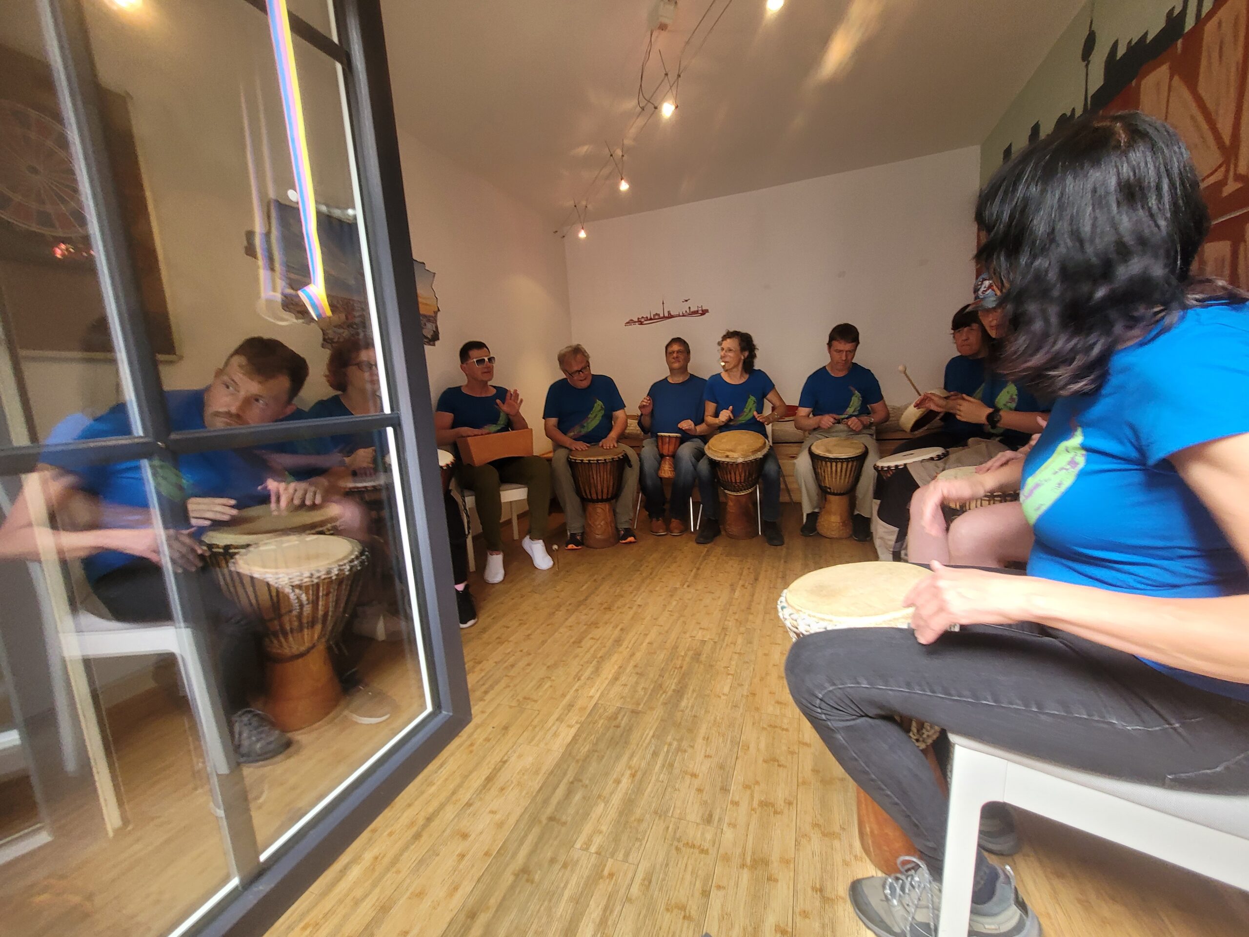Einmal im Monat trommeln Die Grünen Bananen. Wir erproben uns dabei an verschiedenen Perkussionsinstrumenten wie Djembé, Bongo, Cajón, Handtrommel, Schlitztrommel, Tabla, Rasseln, Wood Block, Shaker. Über das Improvisieren finden wir mehr und mehr Variationsmöglichkeiten. Oder wir arbeiten an festen Rhythmen. In fast all unseren Stücken gibt es Musik oder es wird getrommelt.